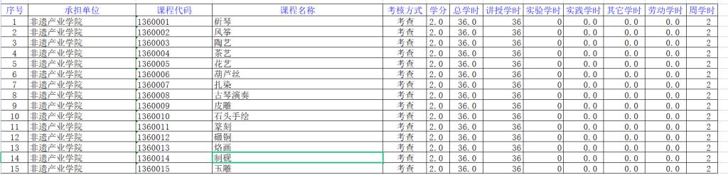 非遗产业学院现开设15门非遗选修课,包括斫琴、风筝、陶艺、花艺、茶艺、葫芦丝、扎染、古琴演奏、皮雕、石头手绘、篆刻、砸铜、烙画、制砚、玉雕。