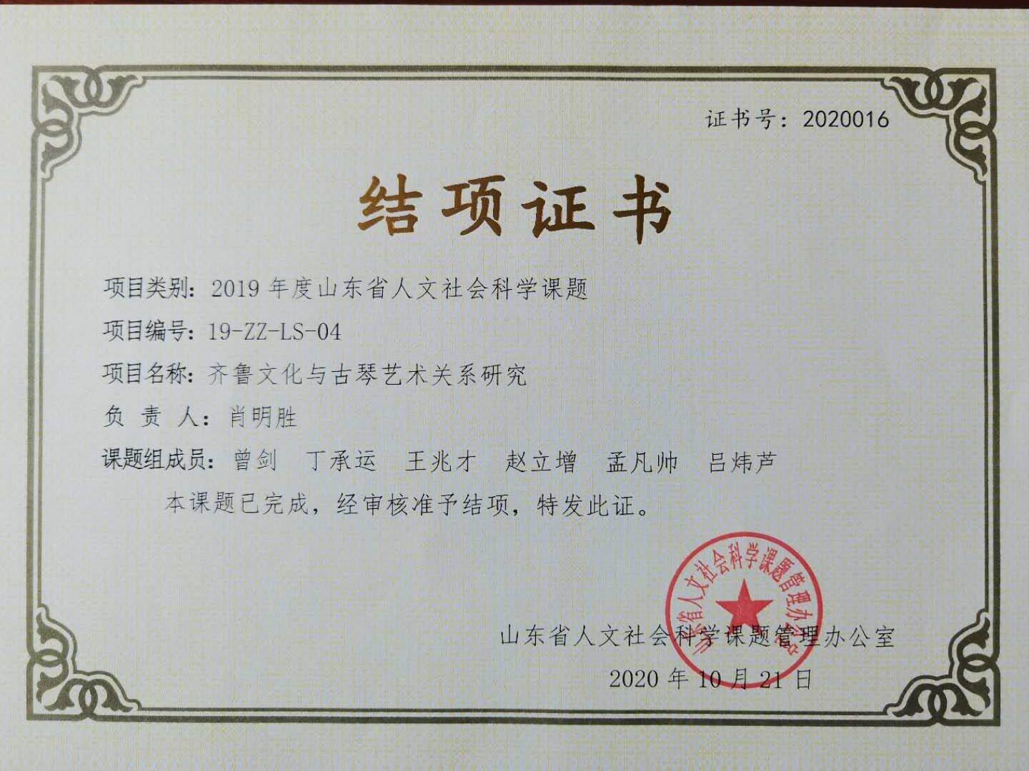 2019年度山东省人文社会科学课题