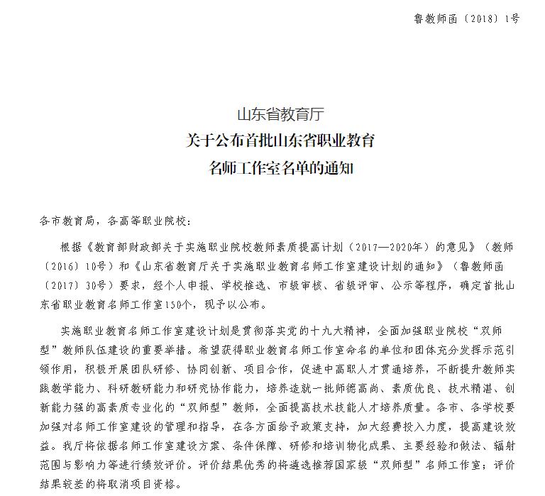 肖明胜教授获得首批山东省职业教育名师工作室