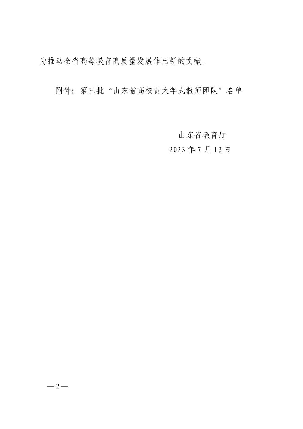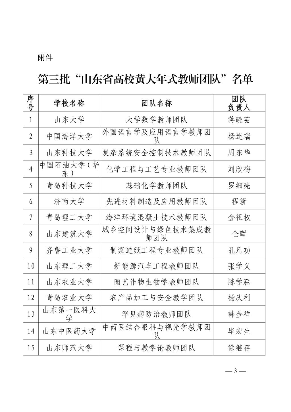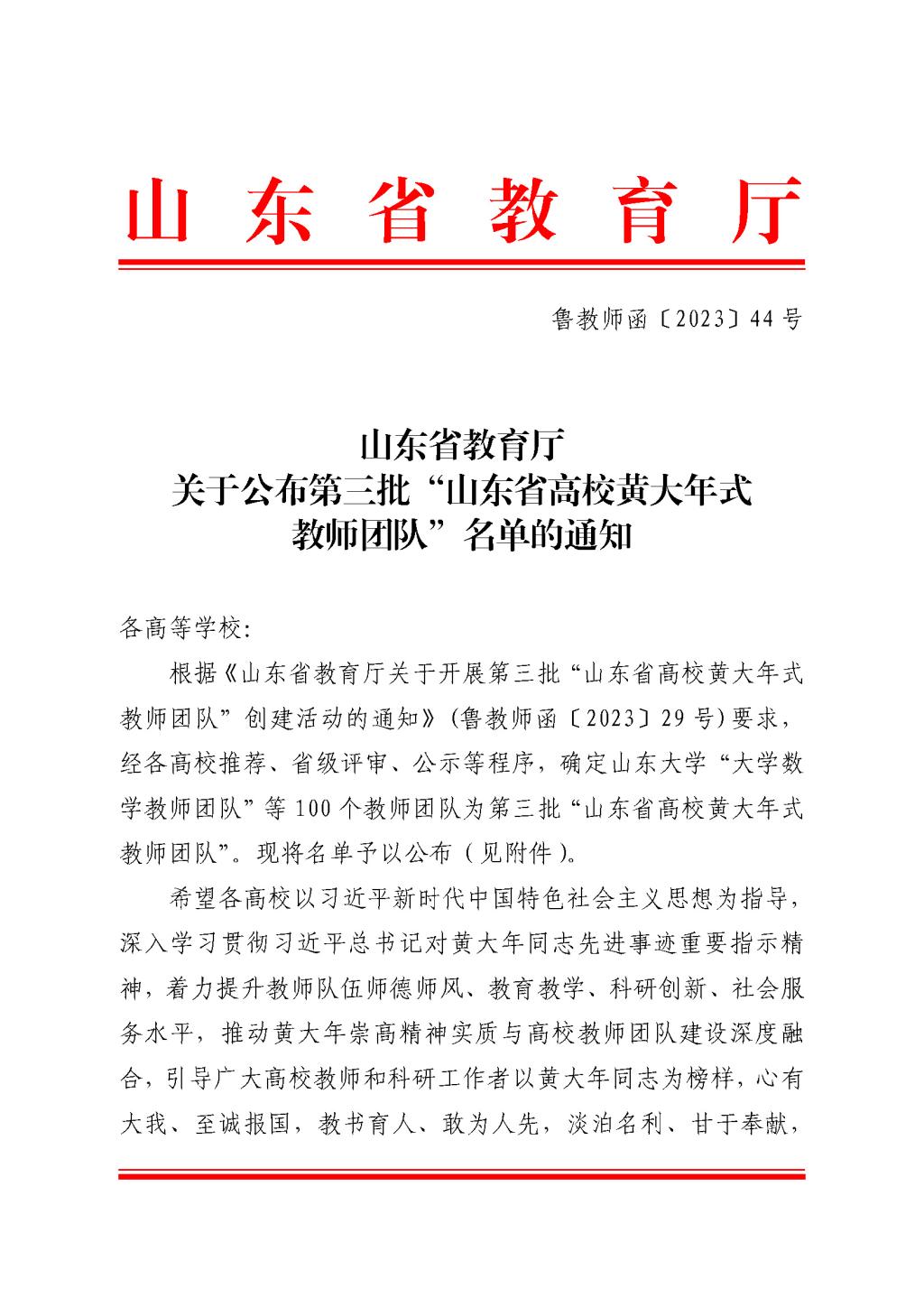 山东省教育厅第三批“山东省高校黄大年式教师团队”