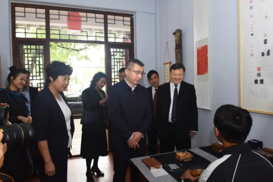 蒋士秋在讲话中代表省文化和旅游厅向活动的举办表示祝贺。他指出,校政企合作共建非遗产业学院,体现了潍坊工程职业学院的文化自觉,对于青州、潍坊乃至山东的非遗保护工作意义重大。他希望学院进一步增强使命感和责任感,坚持创新驱动,整合好校内校外资源,利用好产学研用相结合的协同创新体系,为营造保护非物质文化遗产的良好氛围、服务区域经济社会发展作出新的贡献。